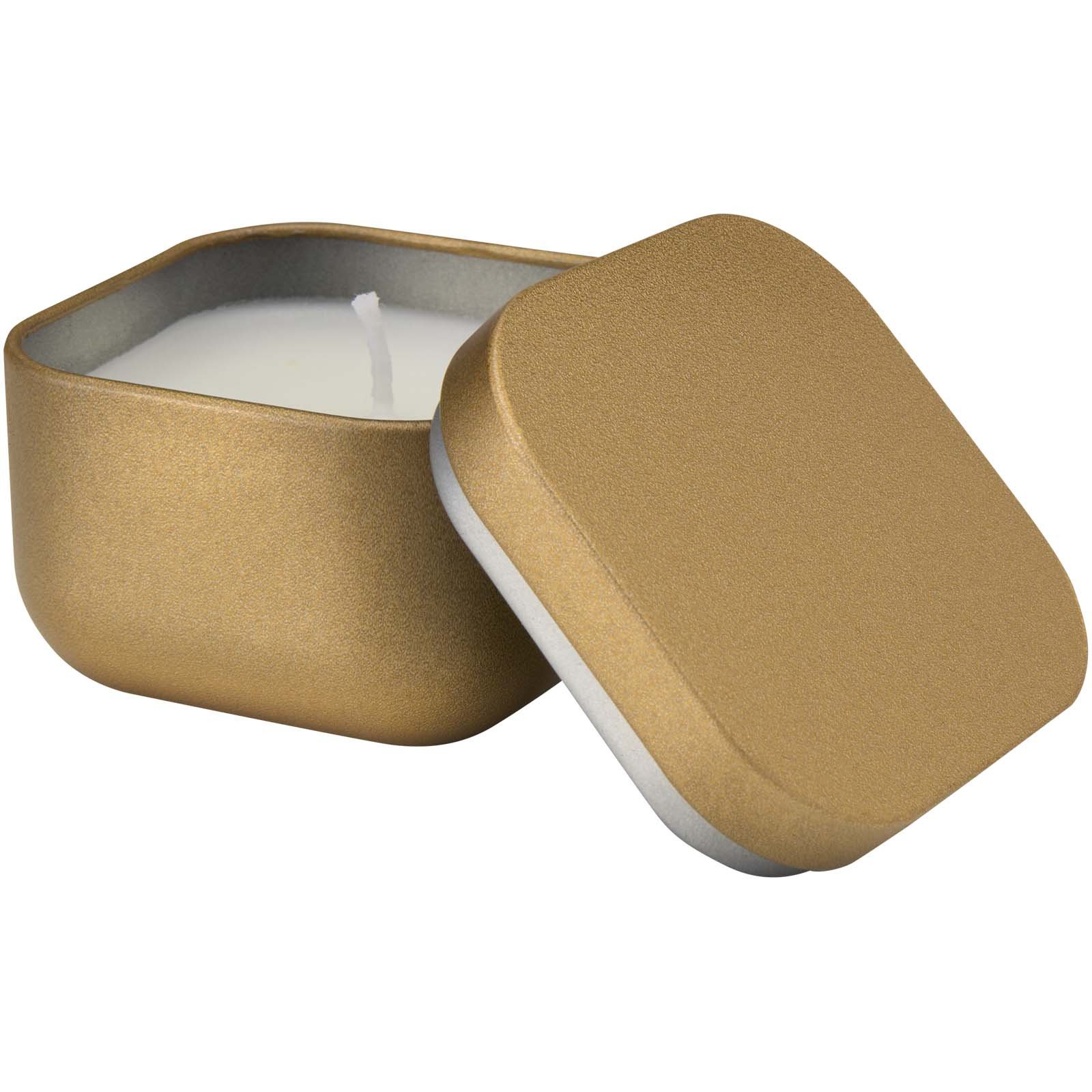 Vierkante paraffinekaars in blik met vanillegeur. Brengt een warme, uitnodigende geur in elke ruimte. Het strakke vierkante blik geeft een moderne uitstraling. De rijke vanillegeur creëert een kalme en gezellige sfeer. Perfect om je huis te verrijken of als attent cadeau. Gewicht kaars: 50 gram. Brandduur: 8-12 uur.